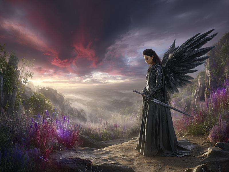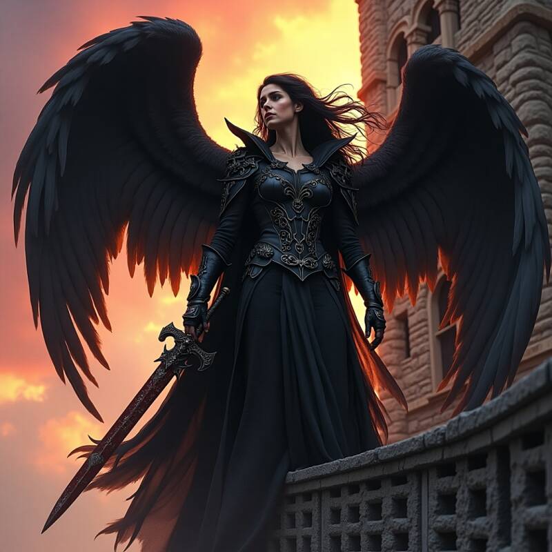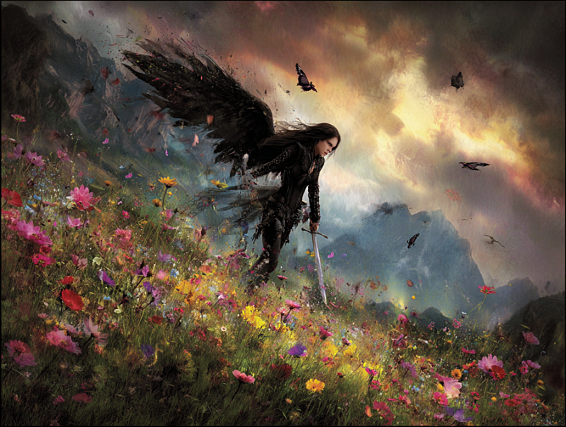 The angel, and her welding sword of death to the enemy,